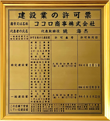 商号又は名称 ココロ商事株式会社 免許有効期間 令和4年7月15日から