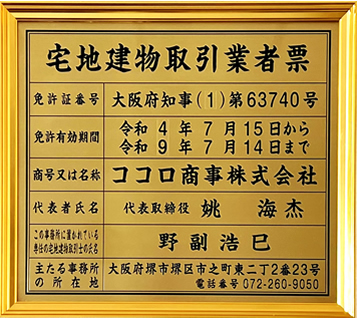 免許証番号 大阪府知事(1)第63740号
